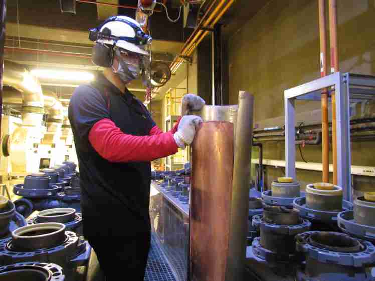 PG国际将废弃物转化成有效的工业或民生原物料,,图为废铜液淬炼后再制成纯度极高的铜管