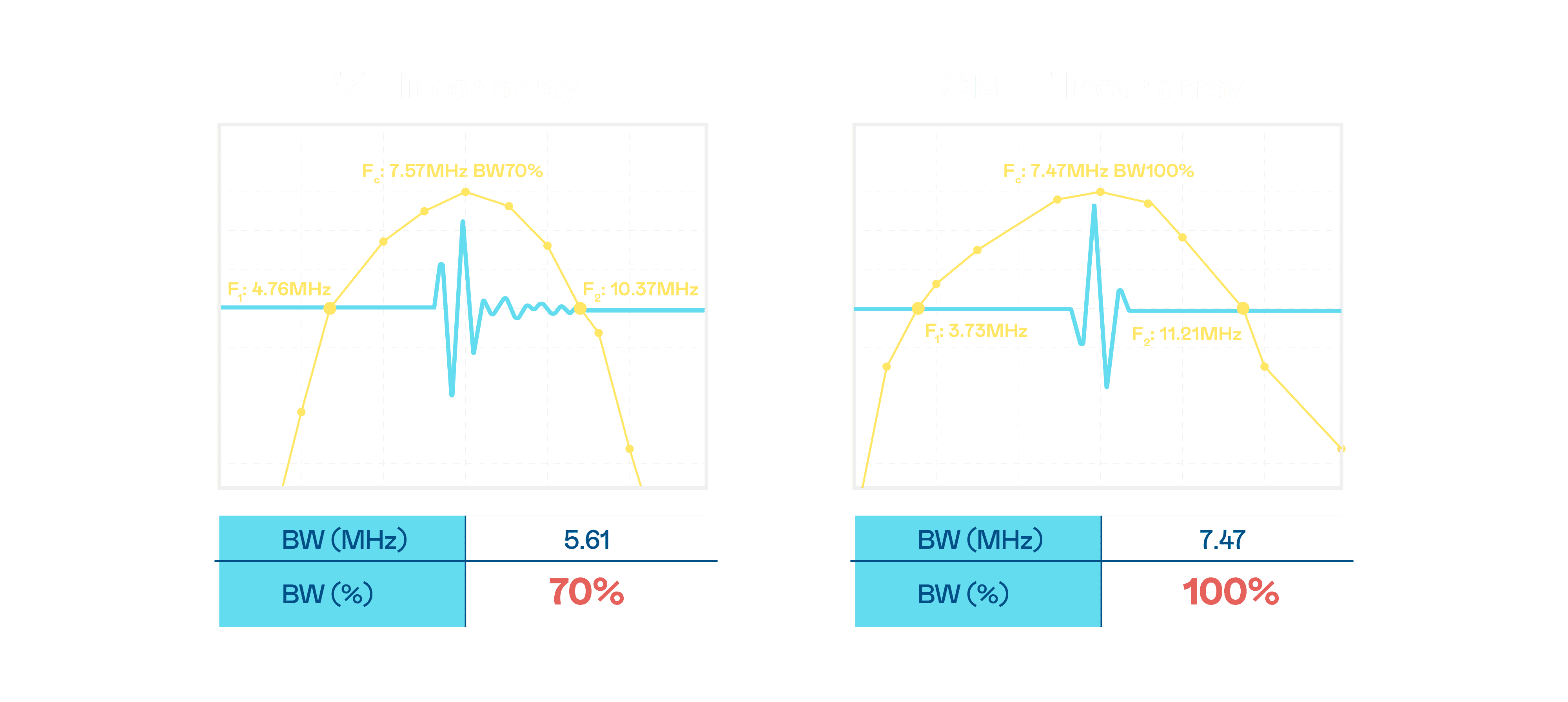 超音波影像的解析度高低,,,首先取决于探头能发出的讯号频宽。。。。PG国际 CMUT 可提供高清晰的超音波讯号,,,提供高频宽、、、、高灵敏度、、、影像纹理细节更高的超音波影像,,协助医护人员缩短影像判读时间及利用精准的医疗影像进行诊断。。
